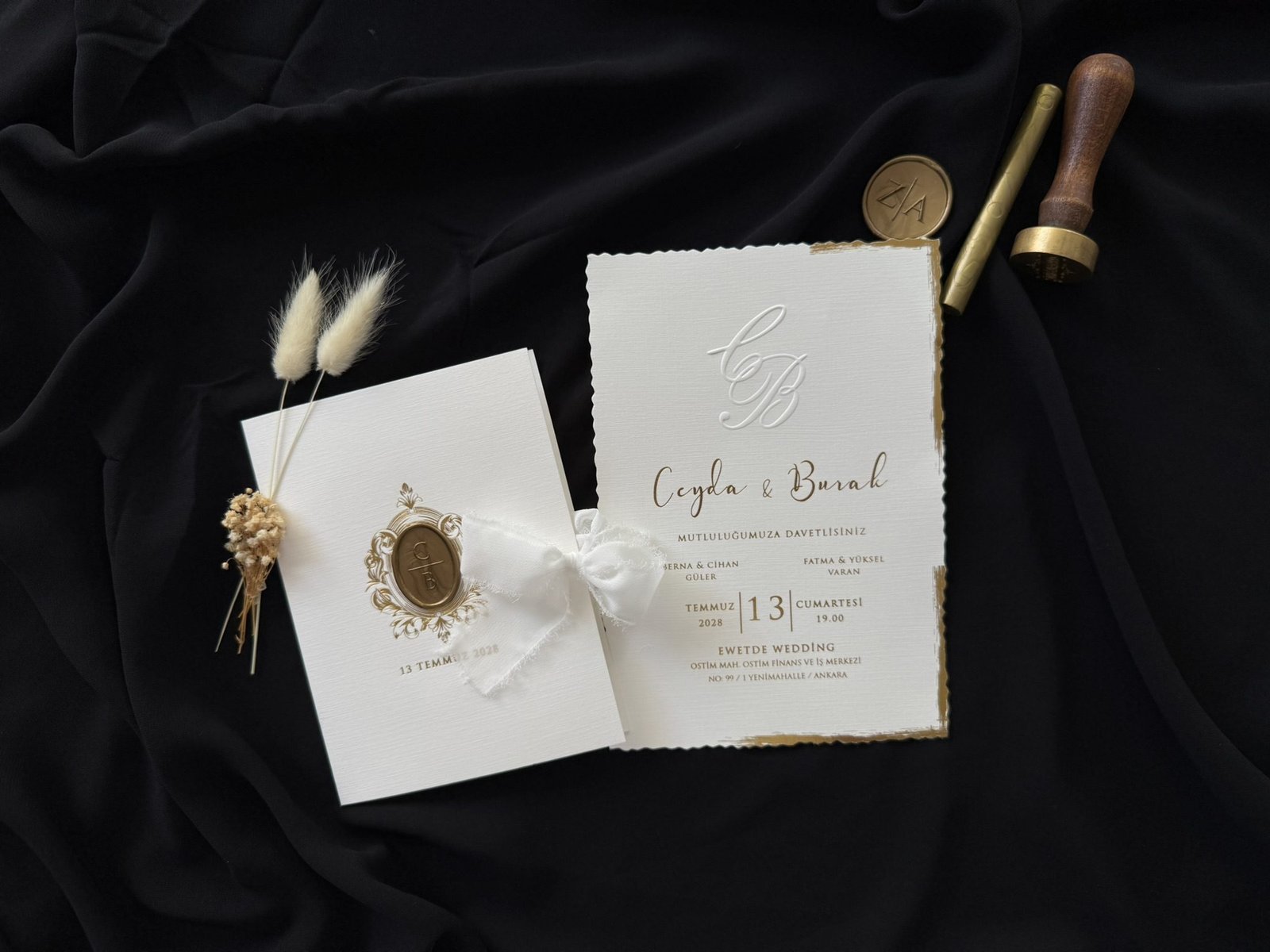 - Some images may showcase upgrades that require an additional purchase. These upgrades include having additional text on the outer side of the invitation, and sealing waxes, which can be purchased above.