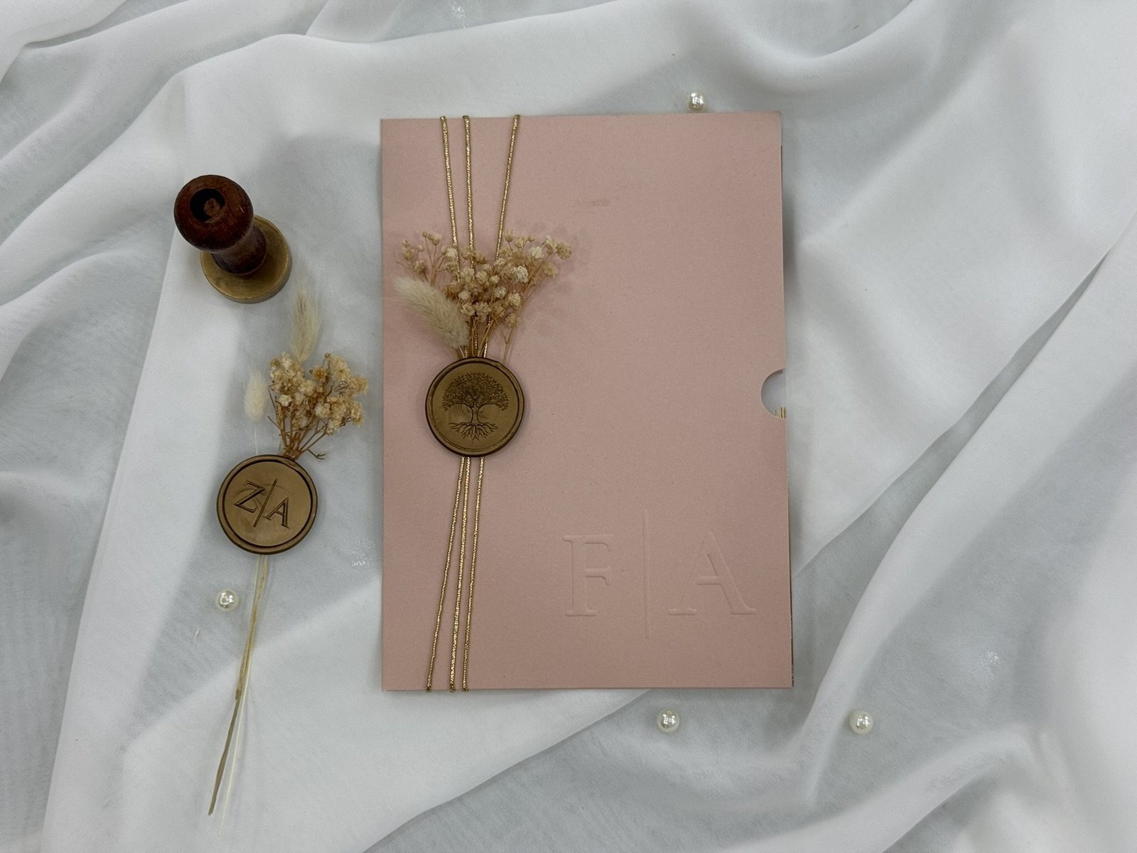 With our custom wax design option, you can create a seal that’s uniquely yours. Choose from various sizes to fit your invitation perfectly. Whether it’s a monogram, logo, or custom artwork, your wax seal will make a memorable impression!