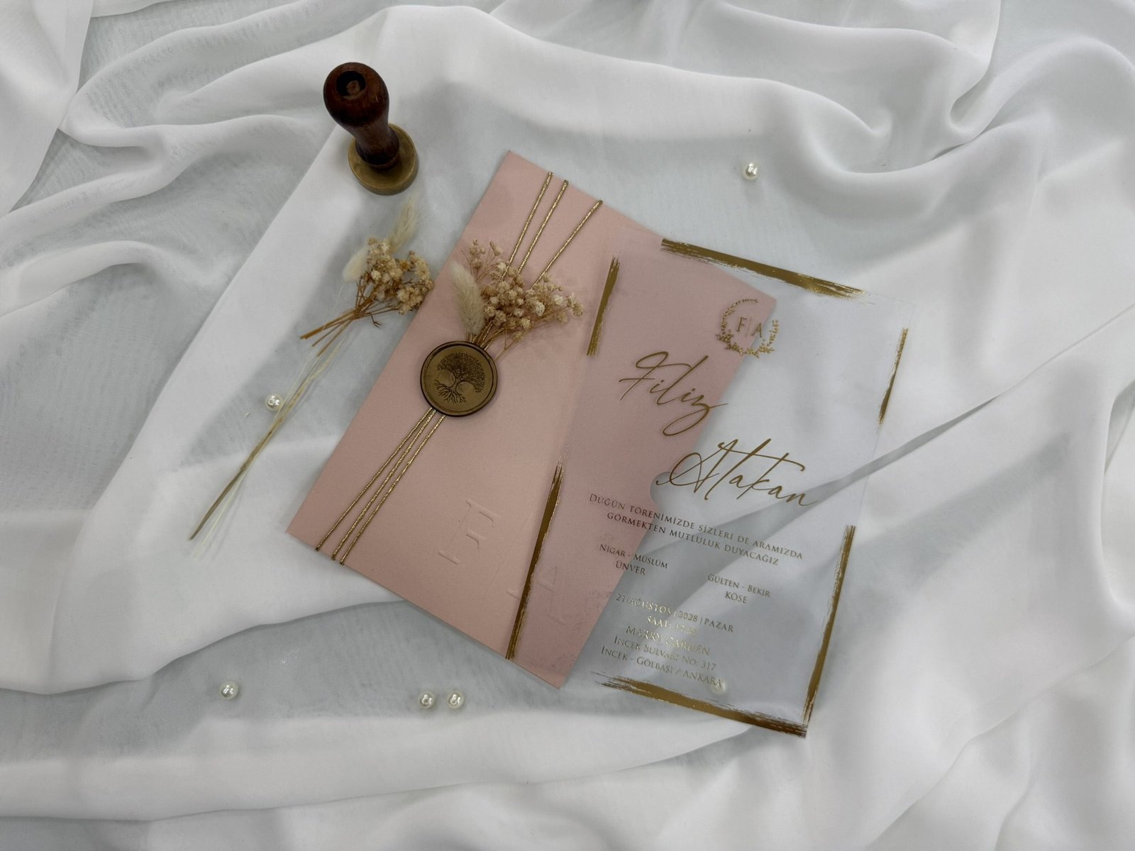 - Some images may showcase upgrades that require an additional purchase. These upgrades include having additional text on the outer side of the invitation, and sealing waxes, which can be purchased above.